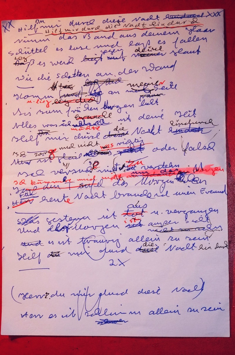 Hinweis vom Admin: Hier ein Einblick in den Übersetzungsprozess. Auf der Suche nach der möglichst abweichungsfreien Übersetzung wird der song immer wieder gehört und in der Übersetzung gestrichen und geändert. [Weiter zur fertigen Übersetzung]